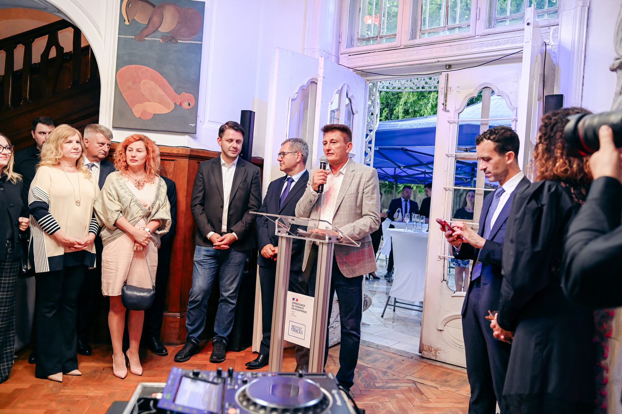 Pe 9 iulie, într-o atmosferă elegantă, plină de emoție și prietenie, Institutul Francez din Timișoara a fost gazda unei celebrări speciale: Ziua Națională a Franței. Evenimentul, organizat de Institutul Francez din Timișoara și Clubul Francofon de Afaceri, a reunit diplomați, oficiali, reprezentanți ai mediului economic și cultural – toți animați de aceleași valori esențiale: Liberté, Égalité, Fraternité.